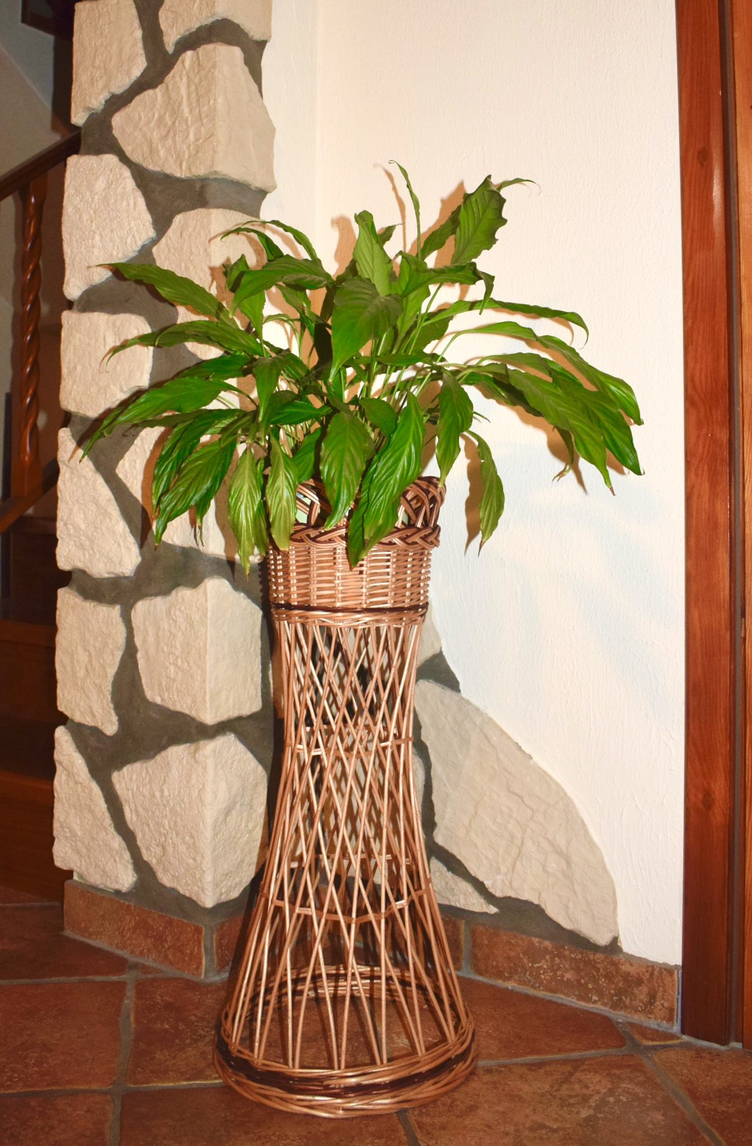 Tento elegantní proutěný stojan na květiny je dokonalým doplňkem pro každou místnost. Vyrobený z kvalitního loupaného proutí, které je barveno do teplé hnědé barvy, přináší přírodní a útulnou atmosféru do vašeho interiéru. Krásně proplétaný vzor na vrchní části stojanu dodává celkovému designu jemnost a sofistikovanost. Tento stojan nejen skvěle podtrhne krásu vašich rostlin, ale díky pevné konstrukci a odolnému materiálu vám poslouží po mnoho let. Ideální volba pro milovníky přírodních materiálů a elegantního stylu.