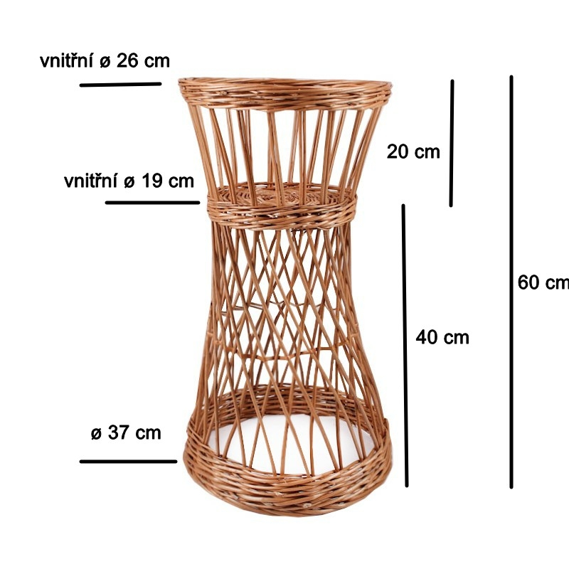 Rádi se obklopujete květinami a máte jich tolik, že už na ně nemáte místo? Použijte proutěný stojan na květiny. Díky neutrální barvě se perfektně hodí do jakéhokoli interiéru, takže se určitě hodí k dekoraci Vašeho domova. Proutěný stojan na květiny spolu s Vaší oblíbenou rostlinou vytvoří jedinečnou výzdobu inspirovanou přírodou. Stojan má též i jiná využití. Pokud jej otočíte rázem máte stojan na deštníky, hůlky či může sloužit také jako váza.