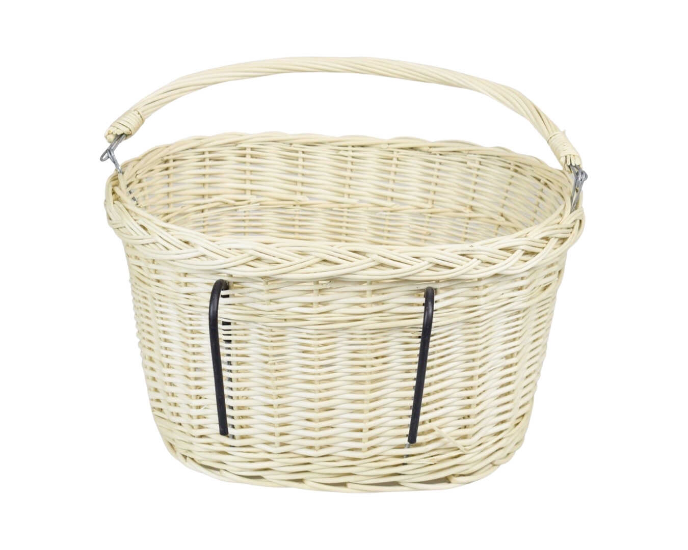 Stylový koš z běleného loupaného proutí, který se stane vaším nepostradatelným společníkem na výletech i při běžných pochůzkách. Díky sklopnému uchu a dvěma hákům snadno zavěsíte na řídítka a rychle demontujete. Po sejmutí z kola ho využijete jako praktický nákupní koš, na piknik v přírodě nebo k pohodlnému převážení drobných domácích mazlíčků. Spojuje funkčnost, přírodní design a radost z každé jízdy – užijte si skvělý zážitek s naším proutěným košem!
