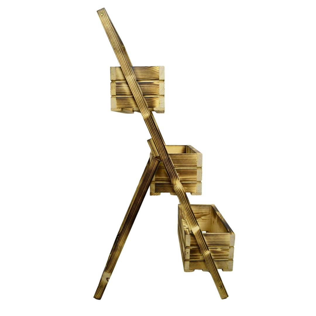 "Oživte svůj prostor s naším dřevěným stojanem se třemi opálenými truhlíky! Tento elegantní stojan přináší do vaší zahrady, terasy nebo interiéru harmonii a stylovou úpravu. Každý truhlík je opalovaný, což dodává dřevěnému povrchu příjemný teplý nádech a vytváří jedinečný vizuální efekt. Ideální pro prezentaci různých rostlin nebo květinových aranžmá. Získejte si pohodlí a šarm přírody s naším dřevěným stojanem a užijte si krásu rostlin v jedinečném stylu."