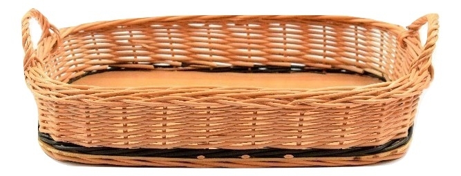 Praktický a stylový hranatý tác ručně pletený z pevného proutí, doplněný dvěma postranními uchy pro snadné přenášení. Skvělý pomocník pro servírování občerstvení, nápojů nebo jako dekorativní prvek do interiéru. Přírodní materiál a precizní zpracování dodávají tácu jedinečný rustikální vzhled, který se hodí jak do moderních, tak tradičních prostor. Ideální volba pro milovníky přírodních doplňků a nadčasového designu.