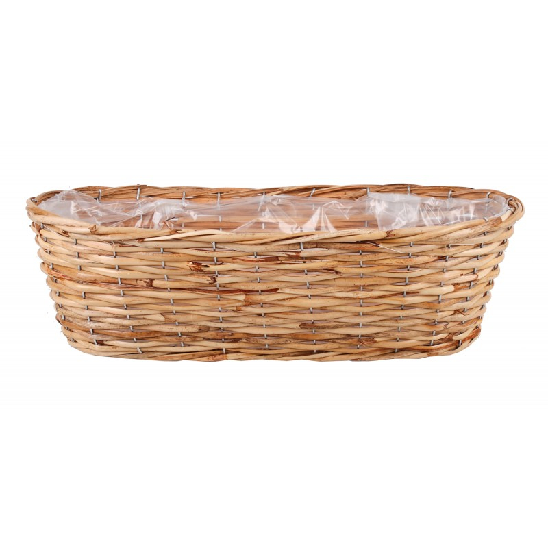 Přírodní ratanový truhlík o délce 48 cm, ideální pro balkonové květiny. Pevná konstrukce, rustikální vzhled a praktická vložka zajišťují dlouhou životnost i snadnou údržbu.