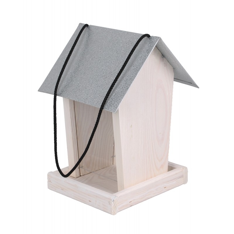 Materiál: Smrkové dřevo, plechová stříška, plexisklo, provázek na zavěšení.