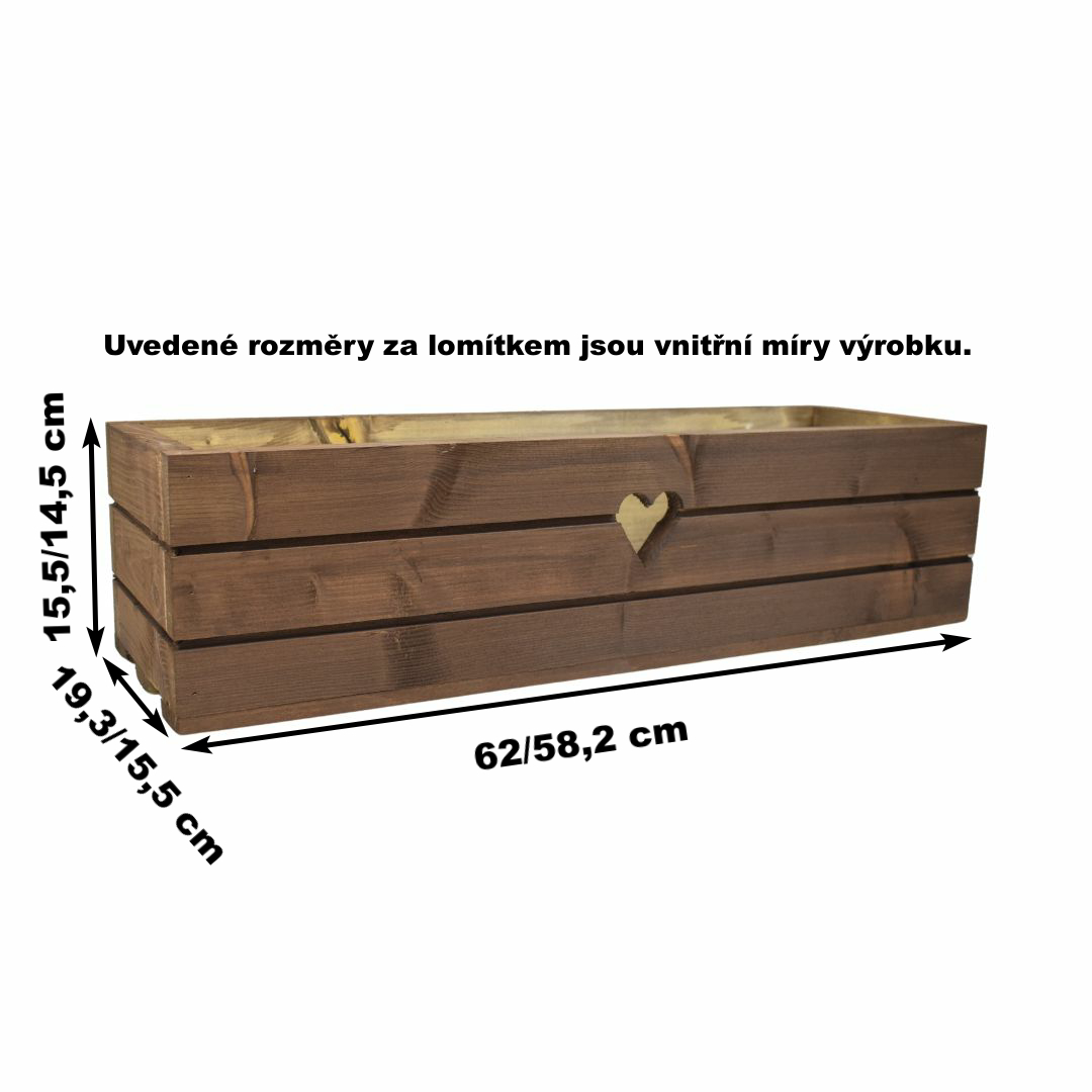 • Dřevěný truhlík z masivu srdce - hnědý 60 cm
