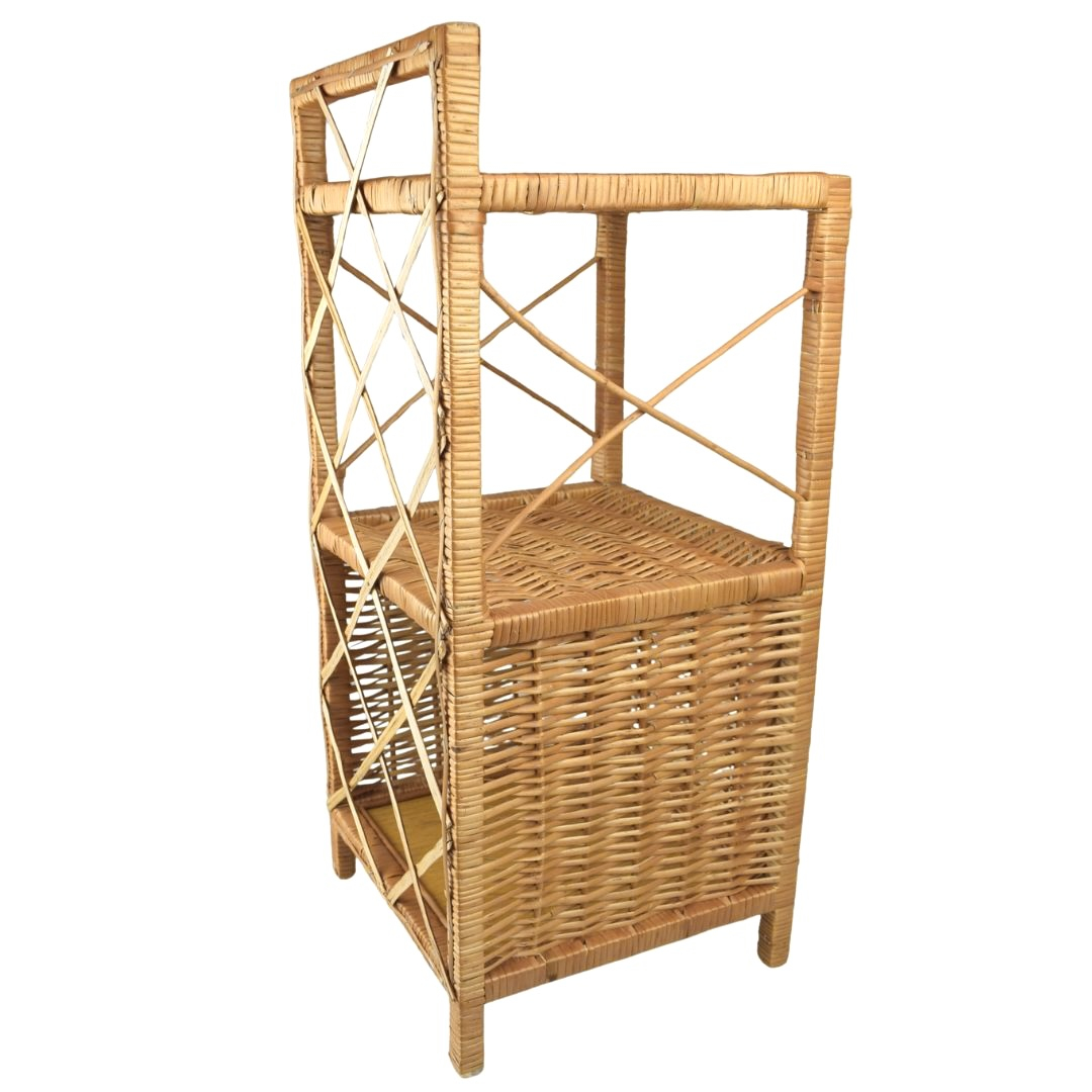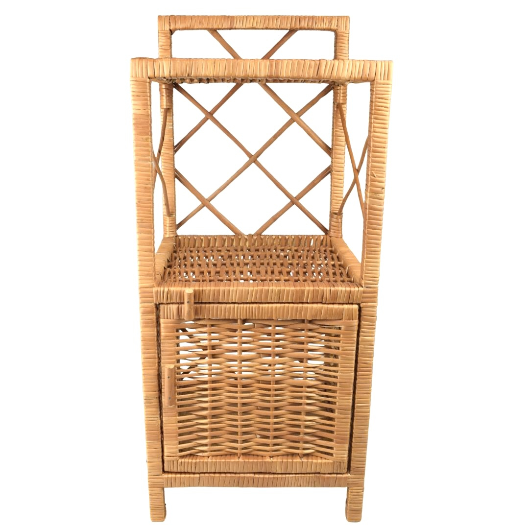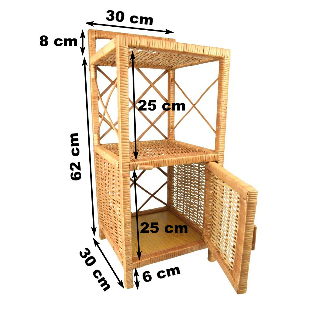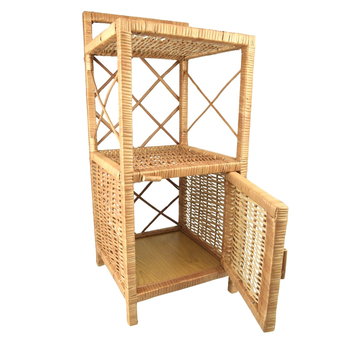 Proutěná komoda s dvířky a dvěma policemi.